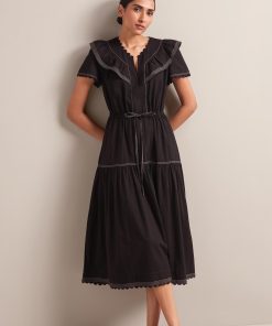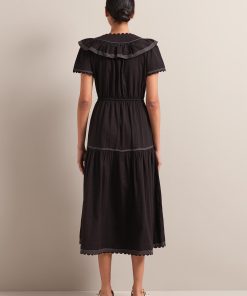 Nessa Cotton Seersucker Maxi Dress – Black