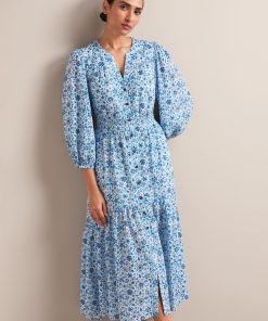 Cut from a beautifully light and drapey cotton viscose voile in two dreamy floral prints, Aspen is the ultimate throw-on-and-look-great summer dress. Machine washable, its flattering V-neckline, bracelet-length blouson sleeve and shirred waist, make it an effortlessly elegant, wear-on-repeat summer saviour.