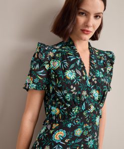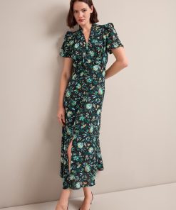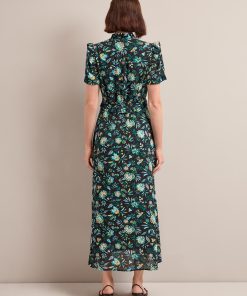 Liliana Cotton Blend Maxi Dress – Black Palm Floral Print