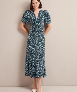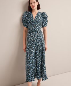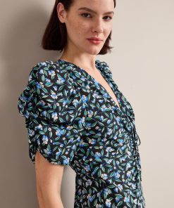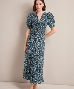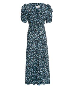 Ophelia Bias Cut Maxi Dress – Black Blue Deco Floral Print