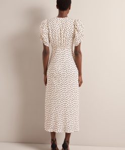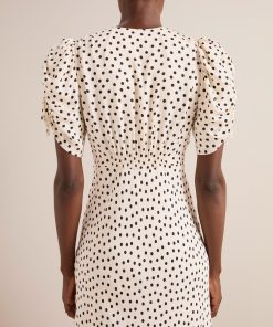 On-trend and ready to party, Ophelia has a dramatic silhouette and vintage feel with its oversized statement sleeve and voluminous bias-cut skirt with godet inserts. Fully lined, the ruche detailing and shirring at the back waist make it fitted yet forgiving. Accessorize with a killer heel and cocktail in hand and get ready to receive your compliments.